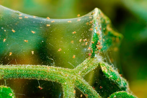 - Паутинный клещ. Этот незваный гость быстро осваивается на растении и методично высасывает из ростков сок и одновременно плетет свою белую тонкую паутину.